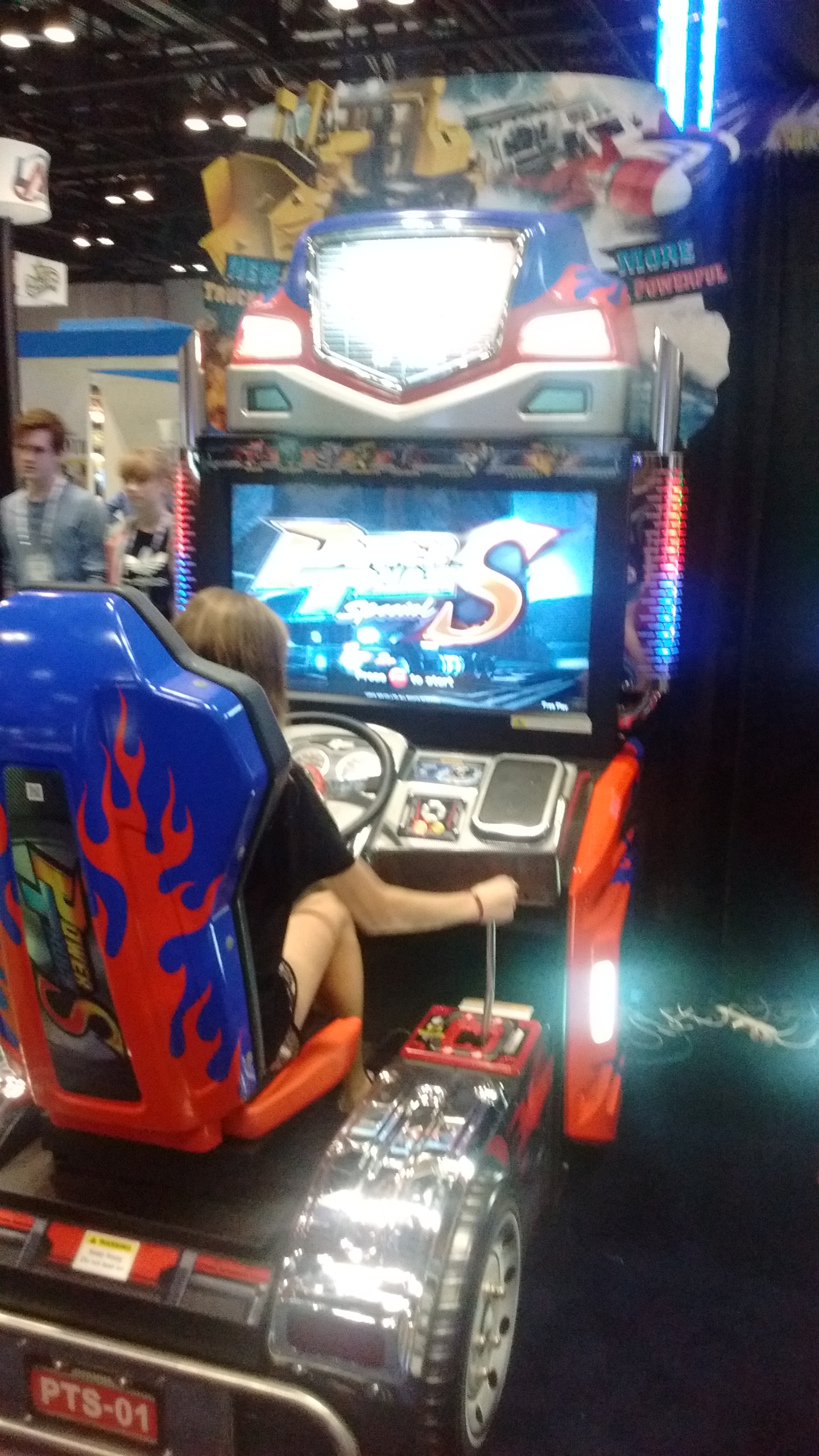 One of the highlights of the trade show was that Sega was there showing off the new to North America “Luigi’s Mansion Arcade”. This has been in Japan for two years now, but this is the first time (other than one location test) that a Luigi’s Mansion Arcade unit has been in the States. It’s a very neat game. It’s an on rails shooter game, where your gun is an all in one flashlight and vacuum cleaner. You stun the ghosts with the flashlight, then suck them into your vacuum. It’s a lot of fun, and I hope it gets translated and a few places pick them up.