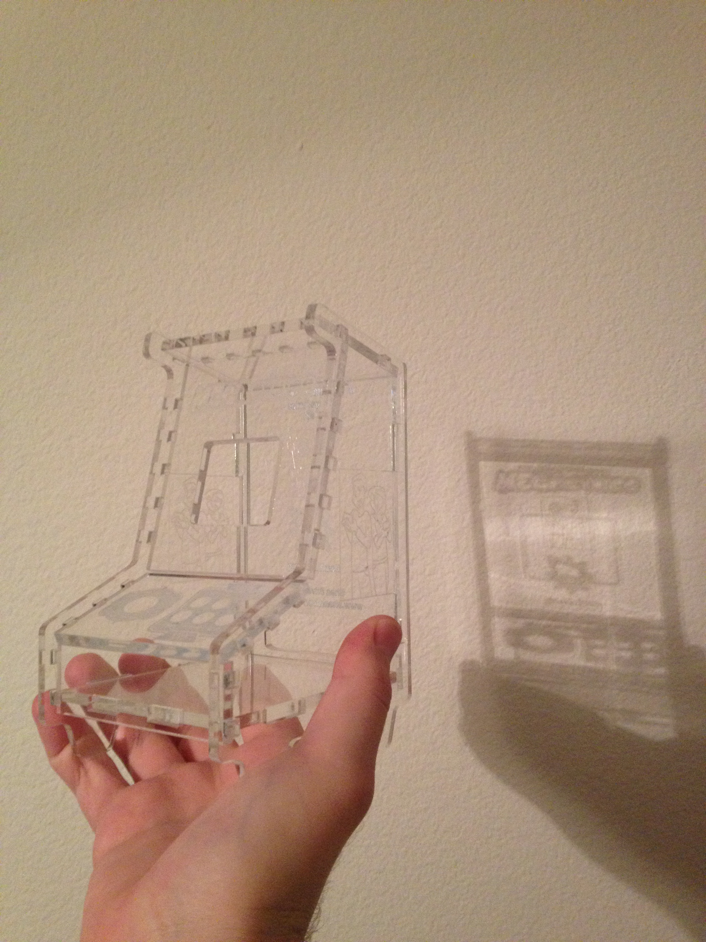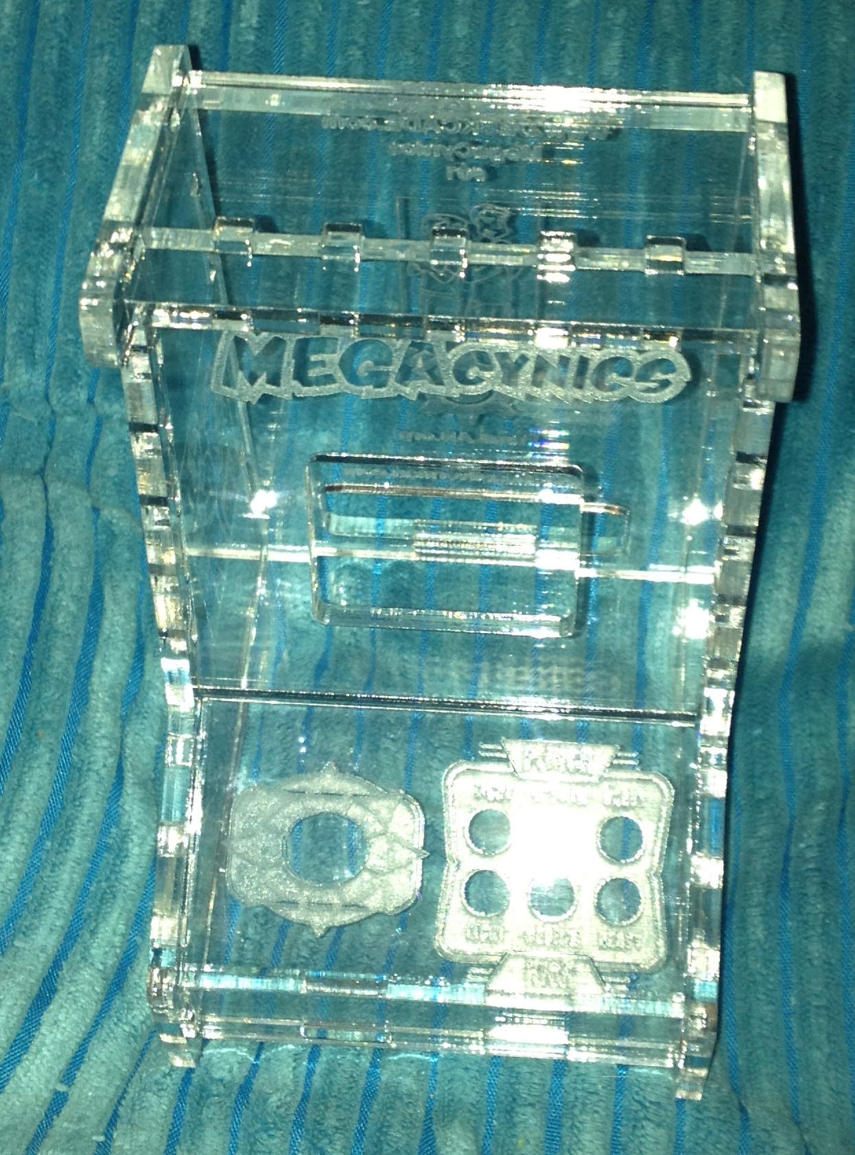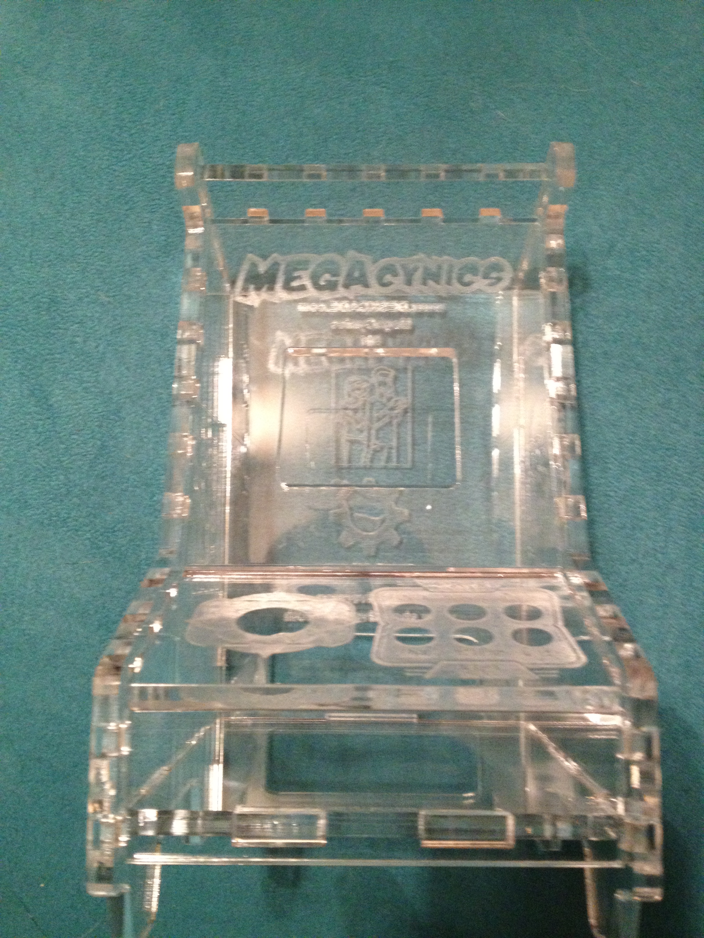 To anyone who hasn’t read the webcomic Megacynics, you should start. It’s a great comic, Ash and Steve are cool people. I recently made a DeskCade for them. This time I tried it out of Acrylic. It took less time, but cost a bit more in raw material. I’m really happy with the look of it though. I have to find a better materials supplier.